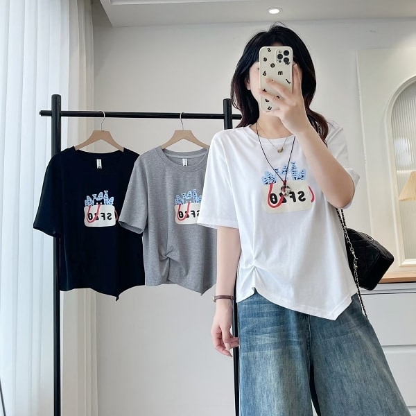 J9551不規則下擺魚魚印花短袖T桖上衣